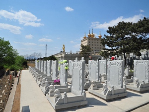 辽西胜境,绿岛明珠,斯园也。遥望宝塔,巍巍耸云摩天,灿灿金光射日。近揽芳园,汨汨清泉泻玉,层层名牌列阵。青松翠柏掩映,瑶草奇葩溢芳。但见神兽护路,莲花迎宾,圣贤肃穆,华表庄严,辽西第一卧佛与寿星老井然相居。古典与时风相济,天地于人神契合。临此境,如步瑶台。凭栏远眺,海势天姿益彰,山影楼群交辉。滨城似重采丹青,汇通如神笔特写;左有青龙昂首,右见白虎驯伏;前流清溪,朱雀高翔;后依影壁,玄武紧托。天门开而财禄广;地户闭而文昌兴。此为风生水起,宇内吉壤。昔有清代佟氏娘娘家族陵寝安卧,福荫子孙,隆及半朝。塔内金碧辉煌,香烟缭绕。幸得西方三圣庇佑,本土众善供奉。若长眠此宫,神灵寝安,后昆发迹,亲眷宜祭祀,游人得观瞻。是园已跻身于全国十大闻名公墓,国家级旅游风景区,市级文物保护单位。美哉乐园,善哉华堂!瞻良苑,敬时贤,园主张春胜,君立意高远,殚思竭力,耗资亿金。造福祉一方,惠荫泽百代,积功德千秋,此乃日月可鉴之举。