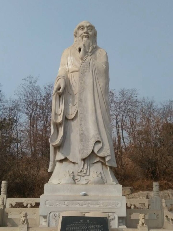 中国古代著名思想家,道家创始者。春秋时期楚国人,姓李名耳,字伯阳,即老聃。官至周朝守藏史,孔子曾向其问礼,视之如龙。其驾青牛西出函谷关,人谓紫 气东来,于关上传世《道德经》五千言。是书文约义丰,博大精深,论宇宙变化,提出"道生一,一生二,二生三,三生万物",认为"人法地,地法天,天法道, 道法自然",强调"反者道之动,弱者道之用",主张返朴归真,"无为,无不为"。老子对中国文化影响巨大,尤被道教尊为祖师。